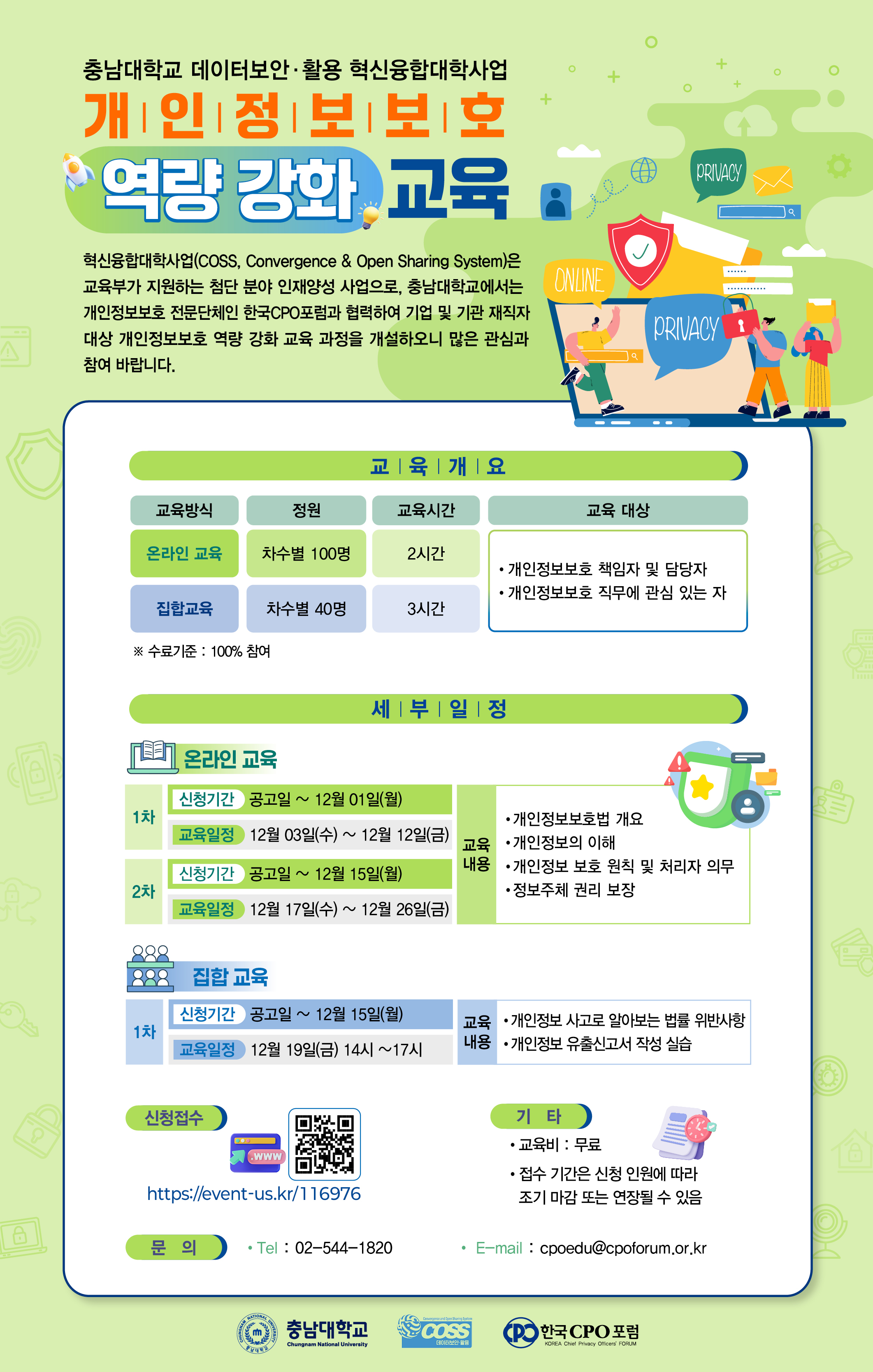 CPE Ãßõ±³À° ¾È³» (Ãæ³²´ëÇб³) °³ÀÎÁ¤º¸º¸È£ ¿ª·® °È ±³À° ÁÖ°ü : Ãæ³²´ëÇб³ ÀÏÁ¤ : 2025-12-03 ~ 2025-12-26 URL : https://event-us.kr/116976 ¸ñ·Ï